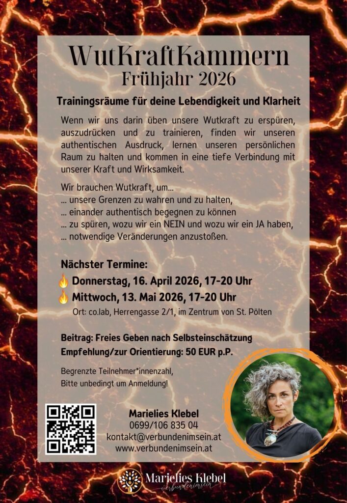 Wenn wir uns darin üben unsere Wutkraft zu erspüren, auszudrücken und zu trainieren, finden wir unseren authentischen Ausdruck, lernen unseren persönlichen Raum zu halten und kommen in eine tiefe Verbindung mit unserer Kraft und Wirksamkeit.